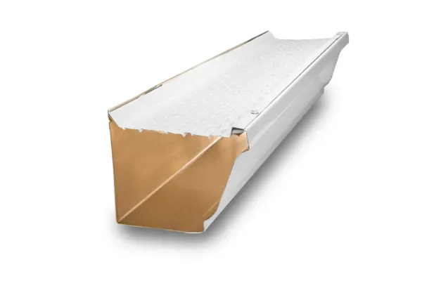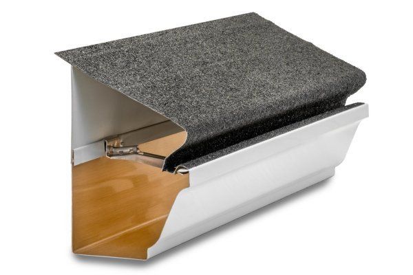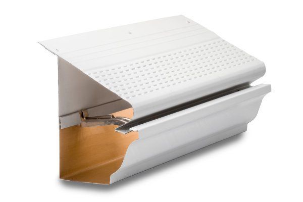 The Forever Clean gutter system. It installs under the first course of asphalt shingles on the edge of the roof so that 100% of the water goes into the gutter system. The top has a unique design with punched slots to slow the water down and filter through into the gutter.
